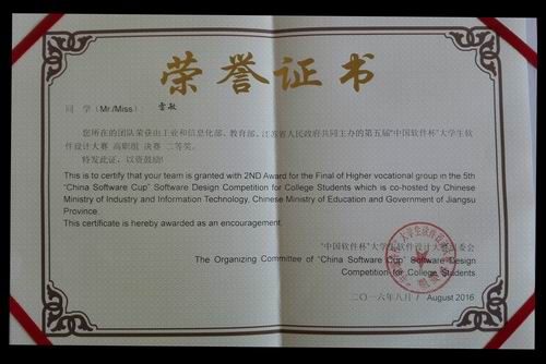 8月23至26日,由工业和信息化部、教育部、江苏省人民政府联合主办的第五届“中国软件杯”大学生软件设计大赛决赛在南京举行,学校信息技术学院选派两支代表队参加比赛,经过三轮激烈的比赛,由雷敏、雷焱森、魏远阳三位同学组成的ship组荣获二等奖,由李笠、刘海威、刘子云等三位同学组成的飞跃组荣获三等奖。