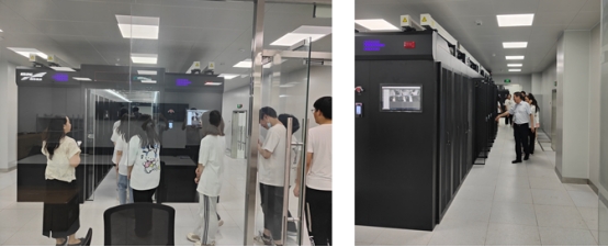企业导师带领师生近距离参观了智算中心,亲身感受数字化技术的前沿应用与发展。智算中心部署了大量的高性能计算设备,如GPU、TPU和FPGA等,旨在支撑数据开放共享、智能生态建设、产业创新聚集,促进AI产业化、产业AI化,及政府治理智能化。