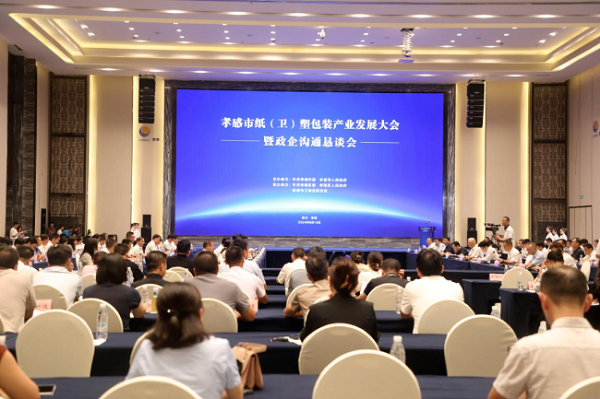 在孝感市纸(卫)塑包装产业发展大会暨政企沟通恳谈会上,中国造纸学会理事长、中国造纸协会生活用纸专业委员会主任曹振雷作了主题为《中国造纸及卫生用品行业的现状及展望》的主旨演讲,市发改委作孝感市纸(卫)塑包装产业发展情况介绍。