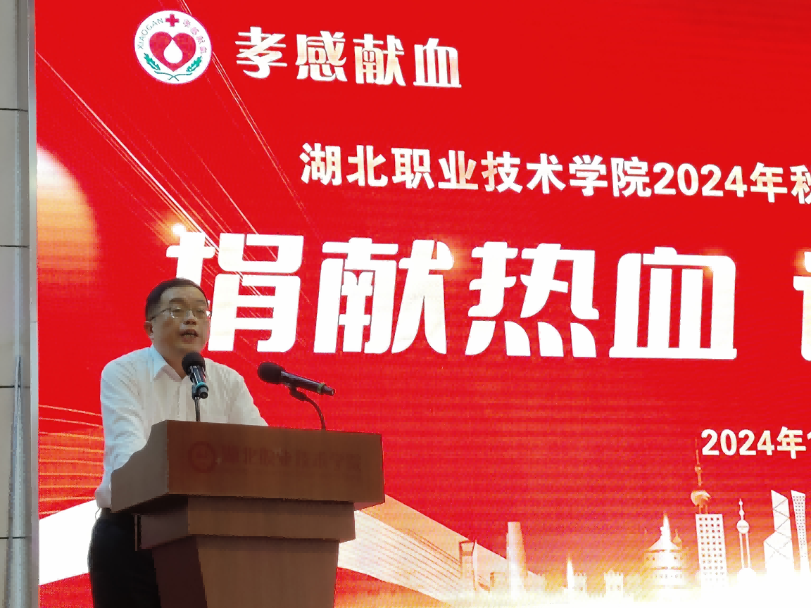 梅重在致辞中强调,无偿献血是一种无私奉献、救死扶伤的崇高行为,学校将无偿献血工作作为“传递爱心奉献精神、弘扬社会正能量”的有效载体和精神文明创建的重要抓手,在无偿献血工作中,学校先后荣获“全国无偿献血促进奖”“全国红十字模范单位”“湖北省无偿献血最美高校”“全市无偿献血促进奖单位”等荣誉称号。下一步,学校将进一步强化使命担当,把责任“担”起来;进一步营造氛围,把精神“扬”起来;进一步强化举措,把爱心“延”起来,不断弘扬“奉献、友爱、互助、进步”的志愿服务精神,积极参与无偿献血活动,勇于捐献鲜血,分享生命,用青春血液彰显青春力量,用青春奉献展现青年担当。