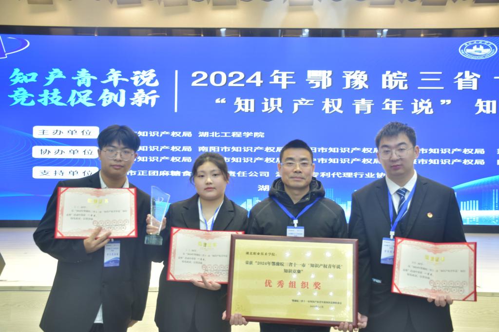 (本网讯 胡世港)11月29日,鄂豫皖三省十一市推选的13所高校代表队一百余名师生齐聚孝感,开展“知识产权青年说”知识竞赛活动。参赛代表队由鄂豫皖三省十一个地市州实行预决赛,再从决赛名单中遴选了11所本科院校和2所高职院校代表队参加本次邀请赛。经过必答题、抢答题、限时演讲等环节的激烈角逐,我校代表队取得综合成绩总分第一名的好成绩,荣获一等奖,学校被授予最佳组织奖,科研处知识产权运营科胡世港老师荣获优秀指导教师奖。