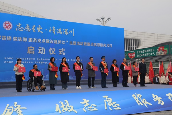 (本网讯 陈灏 余丽 冷玖玲 喻琳 胡友前 卢雅雪 雷珅 周小军 综合报道)3月1日,2025年孝感市“学雷锋 做志愿 服务支点建设建新功”主题活动暨重点志愿服务项目启动仪式在孝感东站站前广场举行。市委书记胡玖明,市委副书记、市长吴庆华,市委常委、宣传部部长吴琼,我校党委书记郭国文、校党委宣传部部长田寿永等出席启动仪式。我校荆楚石榴红志愿服务队“爱老敬老 孝满澴川”志愿服务项目、精诚康复志愿服务队“健康基层行 志愿暖民心”志愿服务项目成功入选2025年孝感市级重点志愿服务项目并现场开展志愿服务。我校青年志愿者协会,教育与艺术学院、财经与旅游学院、机电工程学院、卫生与技术学院等多支志愿服务队参加启动仪式。