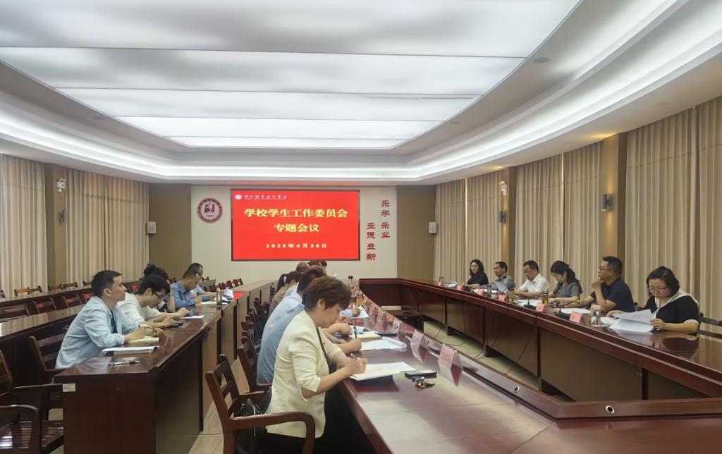 (本网讯 李婷天)4月30日上午,学校学生工作委员会专题会议在西区文德楼二楼会议室召开,全体学生工作委员会委员参加会议,党委委员、副校长梅重出席会议并讲话。