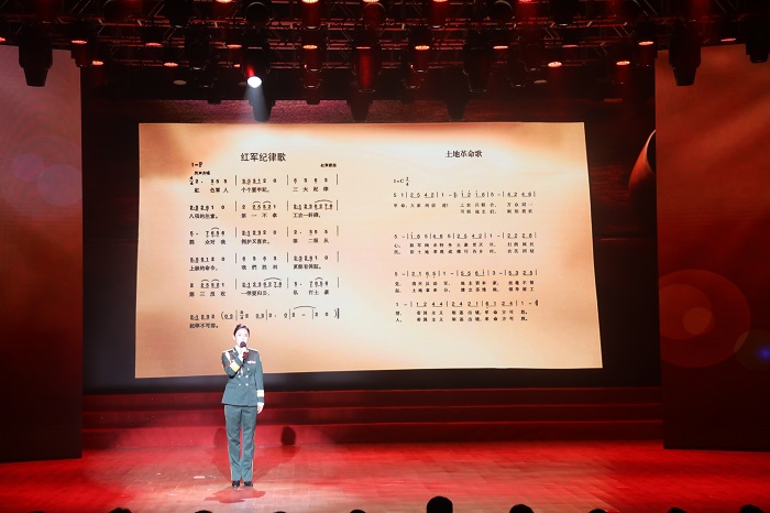红色音乐党课,经典歌曲旋律。《国际歌》开启信仰篇章,《八路军进行曲》回溯全民族奋战历程,《三大纪律八项注意》诠释胜利密码,《洪湖水浪打浪》唤起家园守护情,《中国人民志愿军战歌》彰显正义担当,《歌唱祖国》抒发爱国热忱,《为了谁》传递人民至上情怀,《强军战歌》凝聚强军力量。