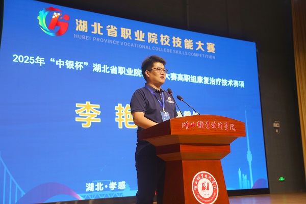 (本网讯 曾欢 陈文培 黄文军 陈灏)7月1日下午,2025年“中银杯”湖北省职业院校技能大赛高职组康复治疗技术赛项颁奖典礼暨闭幕式在我校南校区崇德礼堂举行。湖北省职业院校技能大赛执委会办公室卢靖、赛项裁判长李渤、赛项专家组长邹颖、赛项监督长简亚平、赛项仲裁长李艳、我校校长郭沙等出席闭幕式并颁奖。副校长胡昌杰主持颁奖典礼暨闭幕式。