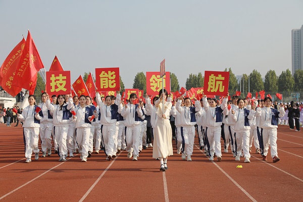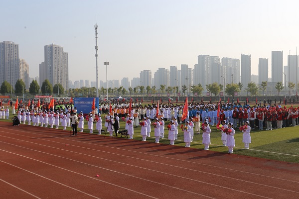 伴随着激昂的《运动员进行曲》,在国旗护卫队的引领下,会徽队、鲜花队、旗林队、各学院代表队、教职工代表队、裁判员代表队迈着整齐矫健的步伐依次入场。文体表演环节中,歌曲《我的天空》唱出青春理想,啦啦操《活力飞扬,逐梦赛场》跳出运动激情,赢得全场阵阵喝彩。