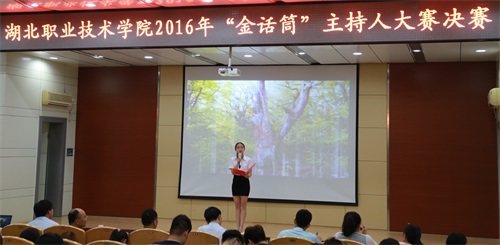 大发登录官网首页“春之歌·魅力湖职”校园文化艺术节“金话筒”主持人大赛决赛于6月16日晚在学术报告厅顺利举行。学校党委副书记张勇,孝感电视台大型活动部主任周革平,孝感广播电视台爱车一族栏目制片人、主持人许轩,学校党委宣传部、党政办公室、团委等相关同志出席比赛并担任评委,学校各二级学院师生代表等观看了比赛。