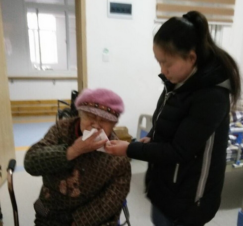 面对湖北职院志愿者联合会的精心照顾,老人热泪盈眶