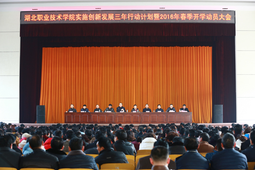 一年之计在于春,万象更新马上行。2月24日上午,大发登录官网首页实施创新发展三年行动计划暨2016年春季开学动员大会在西校区大礼堂召开。学校全体教职工参加了会议,会议由党委书记蔡诗红主持。