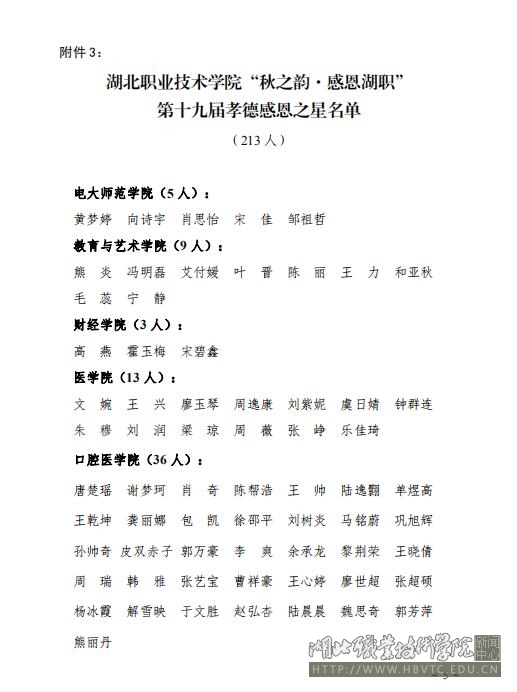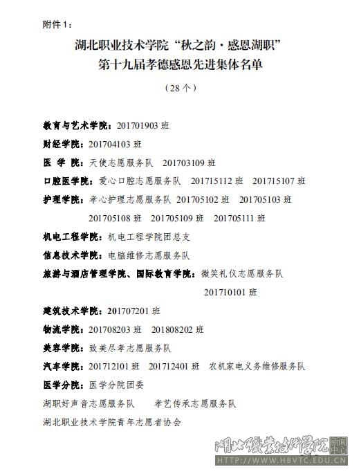 关于公布“秋之韵·感恩湖职”第十九届孝德感恩典型评选结果的通知