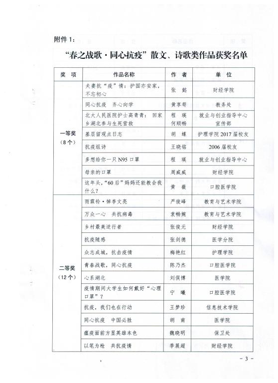 关于公布2020年“春之战歌•同心抗疫”文艺作品评选结果的通知