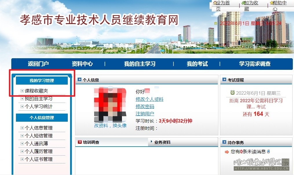 在“个人中心信息管理”中,点击“个人学习统计”,即可查询已学学时。