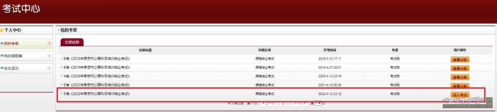 点击导航栏“我的考试”,进入考试中心,点击“进入考试”即可开始考试。