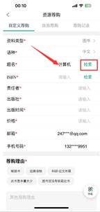 自定义荐购以图书为例:【期刊、电子资源库】操作同理