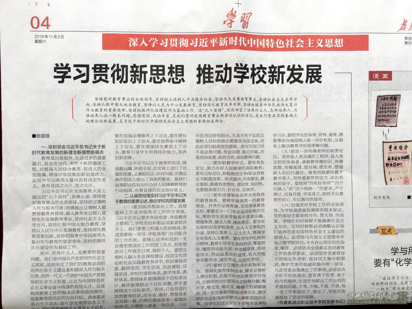 【孝感日报】学习贯彻新思想 推动学校新发展