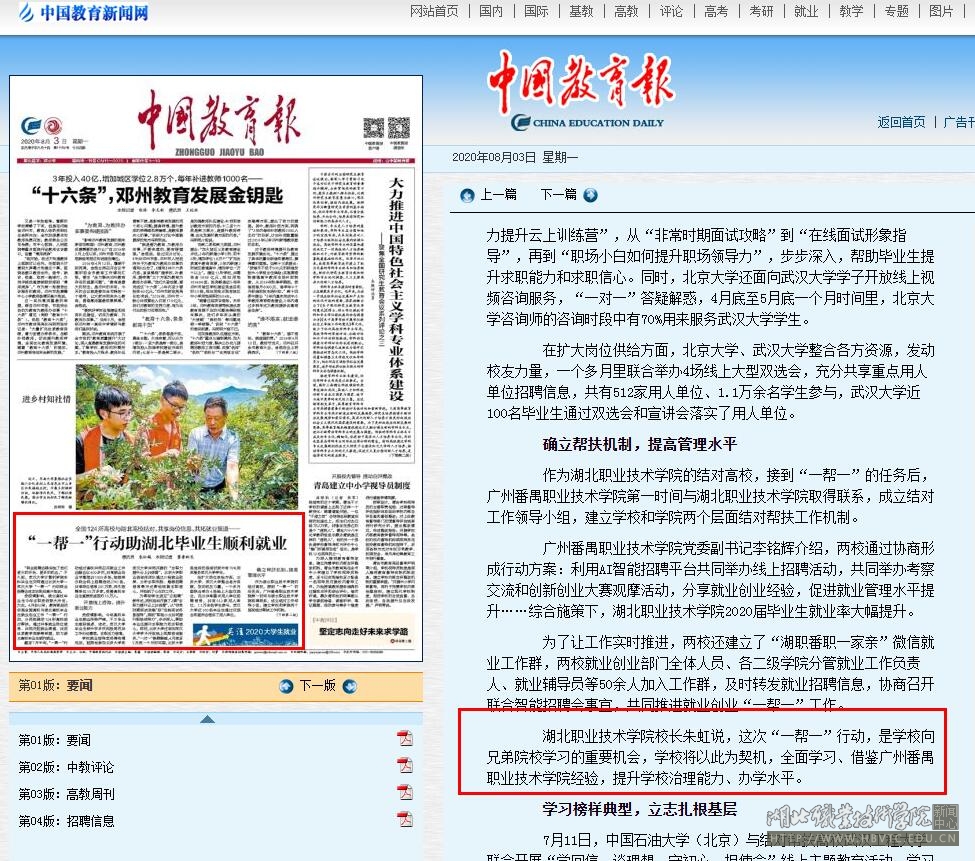 广州番禺职业技术学院党委副书记李铭辉介绍,两校通过协商形成行动方案:利用AI智能招聘平台共同举办线上招聘活动,共同举办考察交流和创新创业大赛观摩活动,分享就业创业经验,促进就业管理水平提升……综合施策下,大发登录官网首页2020届毕业生就业率大幅提升。