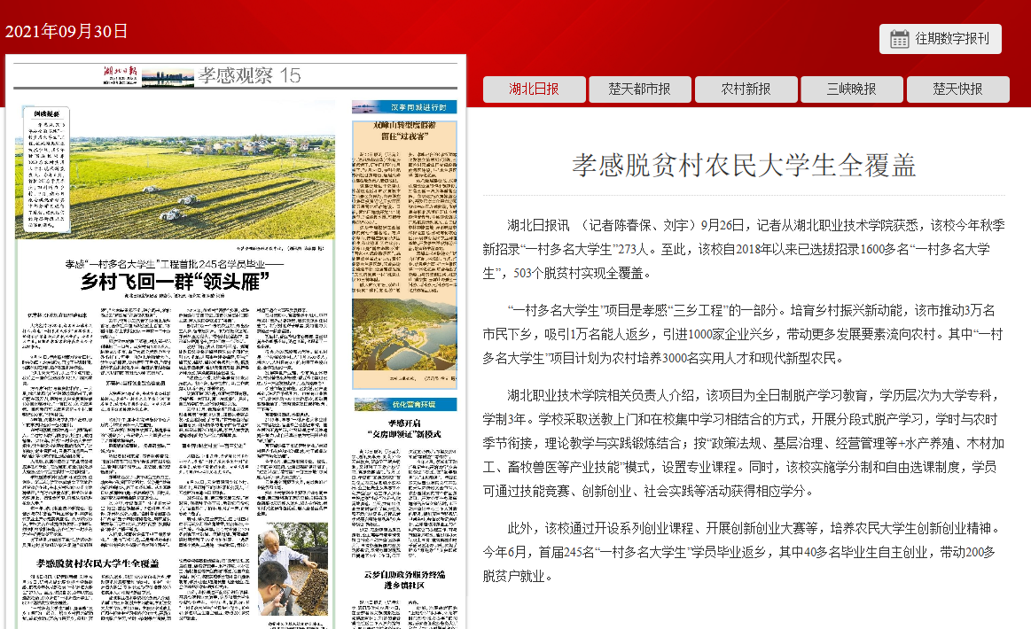 湖北日报讯 (记者陈春保、刘宇)9月26日,记者从大发登录官网首页获悉,该校今年秋季新招录“一村多名大学生”273人。至此,该校自2018年以来已选拔招录1600多名“一村多名大学生”,503个脱贫村实现全覆盖。