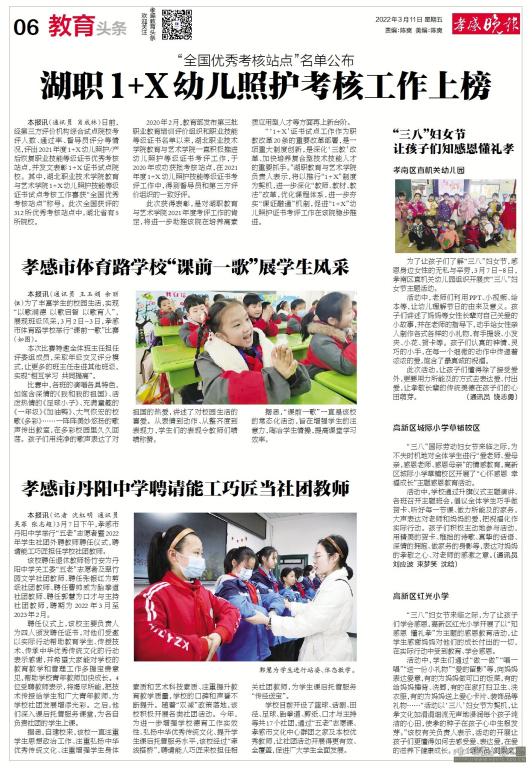 “‘1+X’证书试点工作作为职教改革 20 条的重要改革部署,是一项重大制度创新,是深化‘三教’改革、加快培养复合型技术技能人才的重要抓手。”湖职教育与艺术学院负责人表示,将以推行“1+X”制度为契机,进一步深化“教师、教材、教法”改革,优化课程体系,进一步夯实“课证融通”机制,促进“1+X”幼儿照护证书考评工作在该院稳步推进。