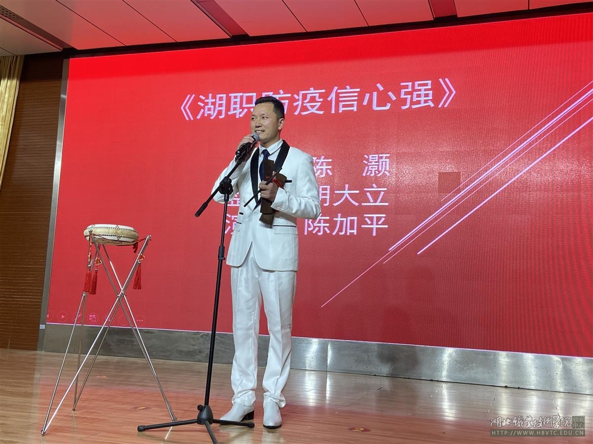 在欢快的音乐中,川剧《变脸》首先登场。随后,伴随着清脆的鼓点,一首《湖职抗疫信心强》将现场气氛拉到高潮,现场掌声不断。展演结束后,陈加平与现场师生进行互动交流,并介绍了自己是如何与湖北大鼓结缘的。活动最后,湖职学子带来了精彩的街舞和啦啦操展示。
