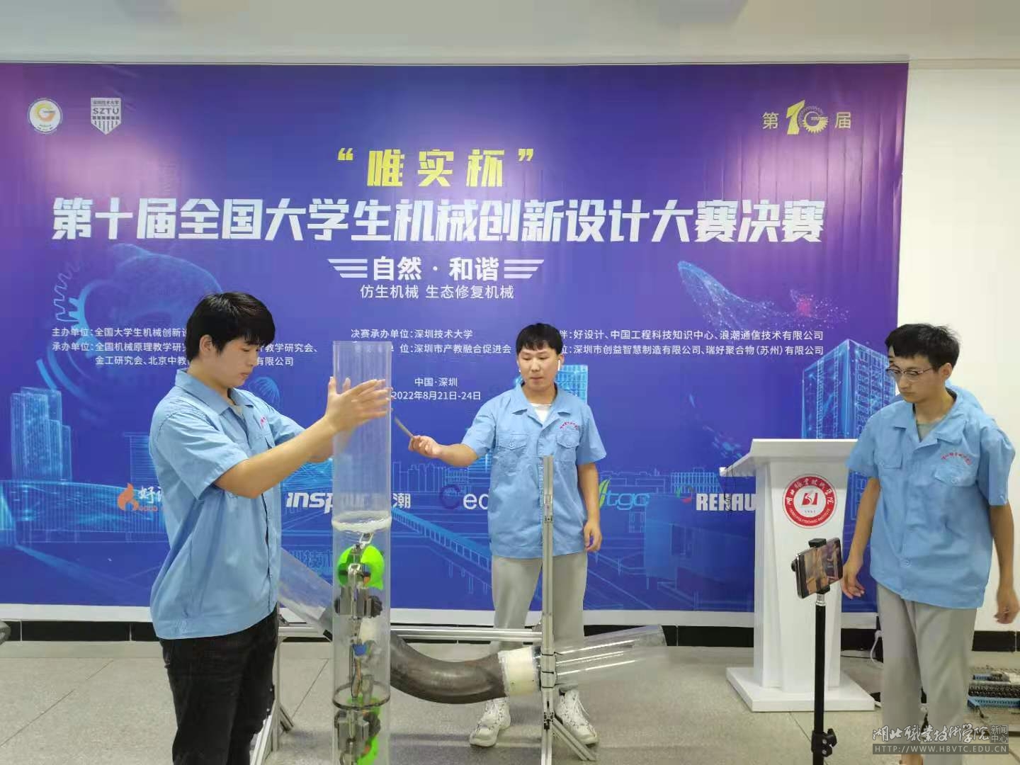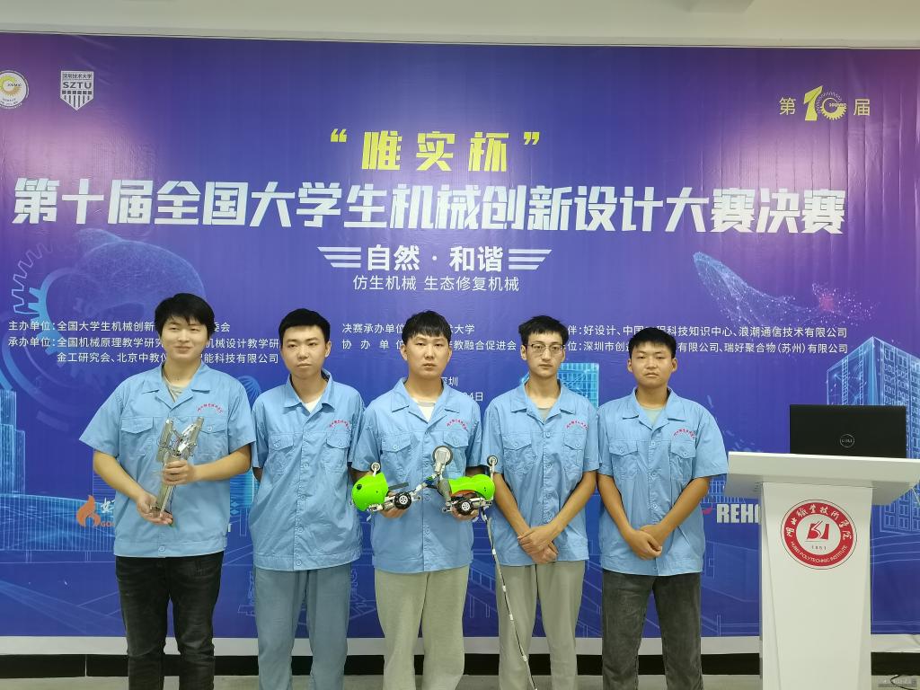 “唯实杯”第十届全国大学生机械创新设计大赛由深圳技术大学承办,全国参赛高校704所,全国30个赛区参加省级预赛作品5972项,经核实,限项后切题作品5415项。参加全国决赛的作品,只占全国省赛切题作品总和的3.7%。大发登录官网首页代表队的仿生机械作品“一种攀杆爬管清淤毛毛虫”,在接近两年的备赛过程中,团队成员克服疫情影响、暑期高温等因素,精心打磨参赛作品。展示答辩中,团队成员以精巧的设计、精美的制作、完善的功能、顺畅的运行、如流的对答,从容地展示了作品的创新性、实用性、性价比等,深受专家评委的好评。经过激烈角逐,该作品获评全国一等奖。