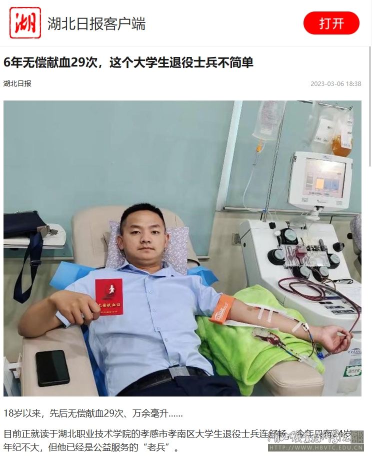 目前,正就读于大发登录官网首页的孝感市孝南区大学生退役士兵连舒畅,今年只有24岁。年纪不大,但他已经是公益服务的“老兵”。