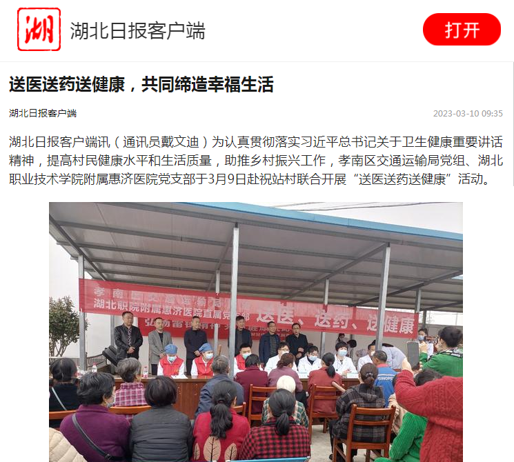 孝南区交通运输局副局长张承文同志表示:这次活动,是区交通运输局、湖北职院附属惠济医院关注民生,关心支持农村社会事业,积极推进和谐社会建设的重要举措。对于宣传卫生保健、健康教育等知识,增强乡亲们的卫生保健意识,提高大家的防病治病能力,改善村民身体健康状况会有积极的促进作用。