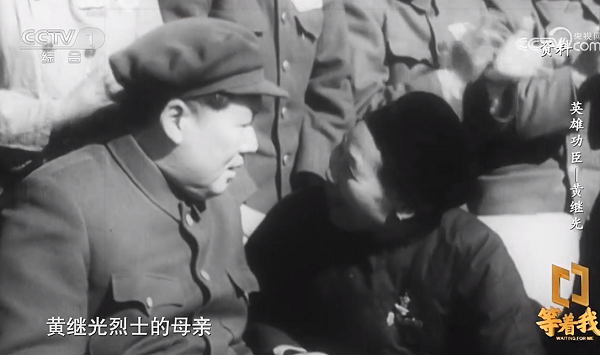 在《等着我》栏目演播室访谈环节,展示了黄继光母亲邓芳芝受毛泽东主席接见等珍贵影像资料;黄继光侄子黄忠凯、黄继光生前所在部队的尚磊等,讲述黄继光精神的传承故事。