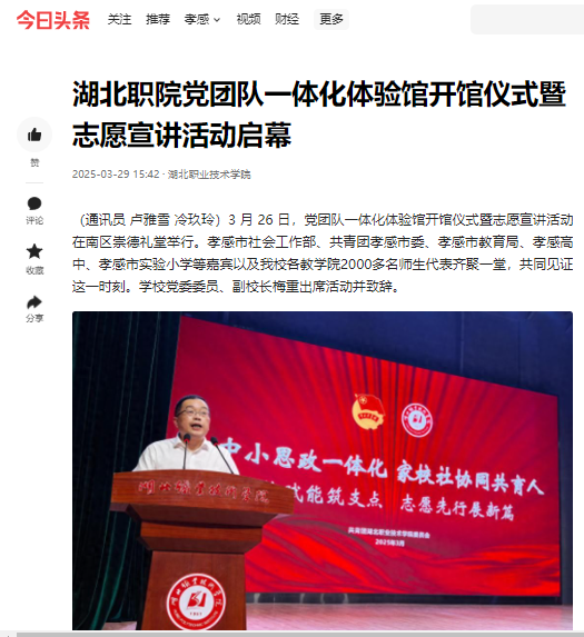 【今日头条】湖北职院党团队一体化体验馆开馆仪式暨志愿宣讲活动启幕