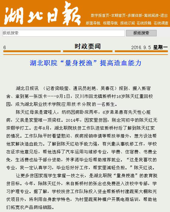 【湖北日报】湖北职院“量身授渔”提高造血能力