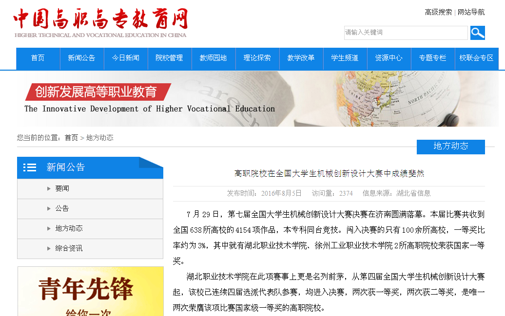7月29日,第七届全国大学生机械创新设计大赛决赛在济南圆满落幕。本届比赛共收到全国638所高校的4154项作品,本专科同台竞技。闯入决赛的只有100余所高校,一等奖比率约为3%,其中就有大发登录官网首页、徐州工业职业技术学院2所高职院校荣获国家一等奖。