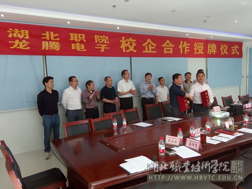 学校副校长李佳圣、教务处、校企合作处处长黄享苟、汽车学院院长刘新平、副院长王俊平孝昌县委常委、宣传部长余亮明、孝昌县科技局局长郭胜忠、工会主席李三涛、孝昌县工商联副主席邹华峰,湖北龙腾电子科技有限公司总经理陈良峰、副总经理尹向阳、技术总监冉启洪、潘仲民等出席签约暨揭牌仪式。