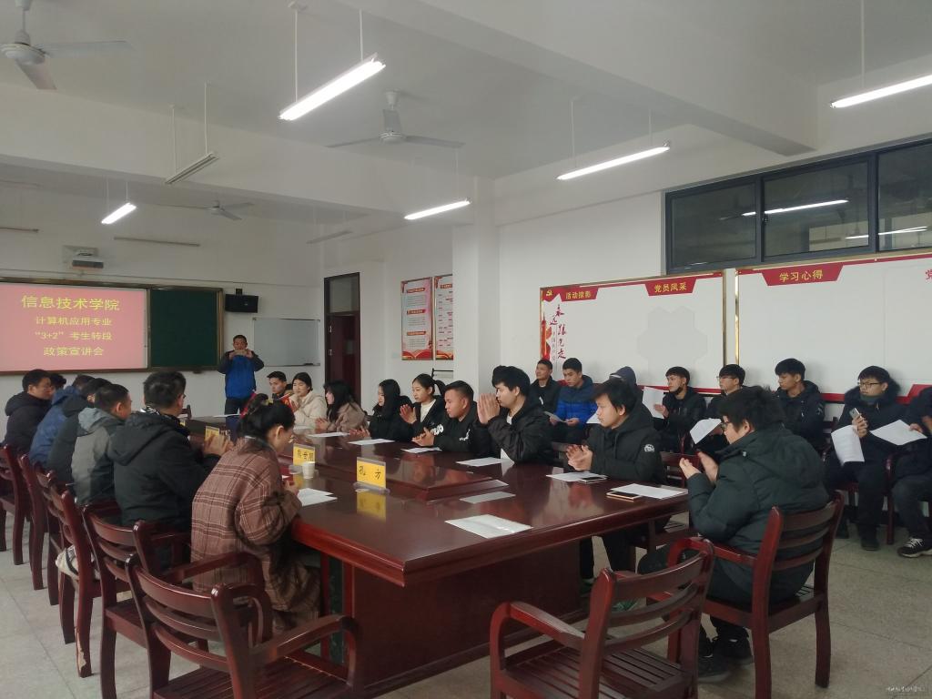 1月16日,信息技术学院迎来了一群特殊的客人——孝感市工业学校2016级计算机应用技术专业“3+2”中升高学生,他们参观了南校区学生宿舍、教室、实验室,到南苑食堂就餐,同专业教师座谈交流3+2转段考试相关注意事项等,提前体验湖职学习生活。孝感工业学校教师代表、学校招生办公室负责人、纪委办公室相关负责人等参加了本次活动。