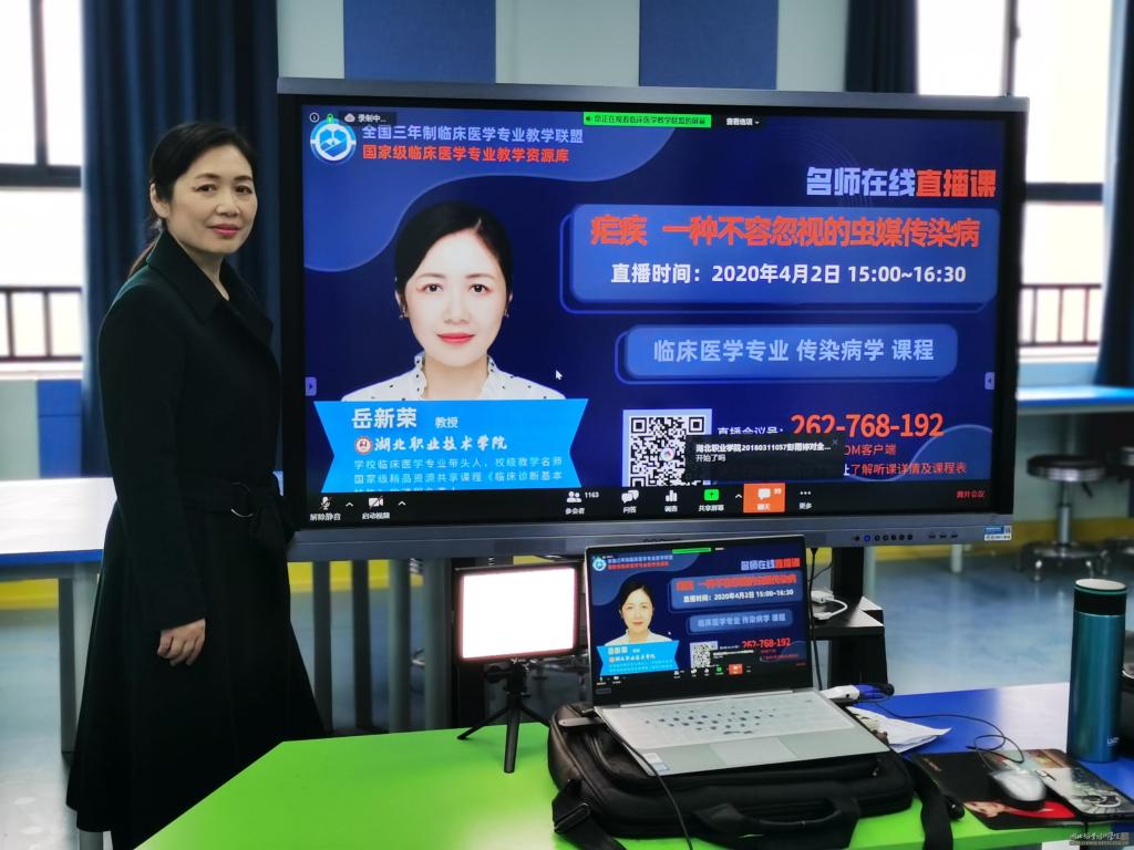 4月2日,学校临床医学专业专业带头人岳新荣教授参加了全国临床医学专业(三年制)教学联盟举办的“名师在线直播课”,来自大发登录官网首页、肇庆医学高等专科学校、沧州医学高等专科学校、漯河医学高等专科学校等全国多所高职高专院校共二千二百余名师生在线聆听了岳教授的精彩授课。学校校长朱虹、副校长李佳圣,教务处处长黄享苟等以各种形式观摩了岳新荣教授的授课。