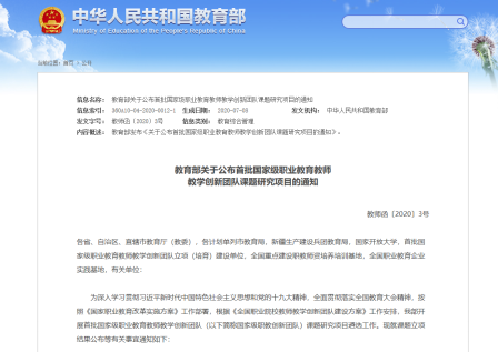 日前,教育部公布了首批国家级职业教育教师教学创新团队课题研究项目立项结果和全国职业教育教师企业实践基地“产教融合”专项课题研究项目名单(见教师函〔2020〕3号),我校胡昌杰教授主持的《1+X证书制度在人工智能技术与应用共同体专业人才培养试点探索与实践应用》项目获得首批国家级职业教育教师教学创新团队实践课题研究项目立项。同时,我校作为国家级职业教育教师教学创新团队培育单位,与深圳信息职业技术学院联合申报的《新时代高等职业院校人工智能技术与应用专业领域团队教师教育教学改革创新与实践》获国家级职教团队课题研究项目专业领域重点课题立项。