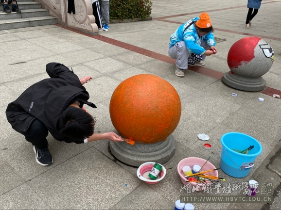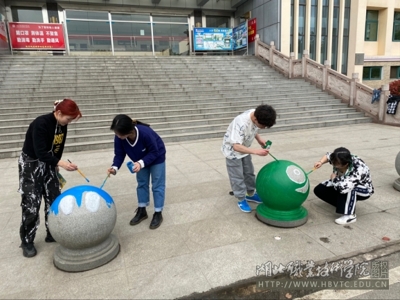 (本网通讯员:郦铨 周颖磊 张家玮)为了弘扬雷锋精神,教育与艺术学院青年团员发挥专业优势,开展“扮靓校园”特色志愿服务活动。3月13日下午,教育与艺术学院2020级建筑装饰工程技术、广告设计与制作专业的学生代表在东校区德艺楼前,用所学的专业知识为楼前隔离石墩穿上特色“新衣”。