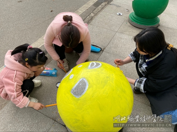 活动现场,同学们充分发挥想象,娴熟的运用设计、绘画等专业技能,将一个个石墩变成了一尊尊艺术品。期间,一群可爱的小朋友也饶有兴趣的参与了相关活动。
