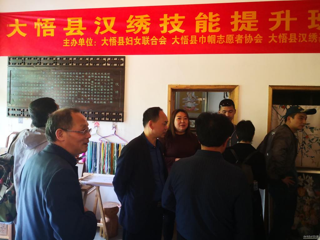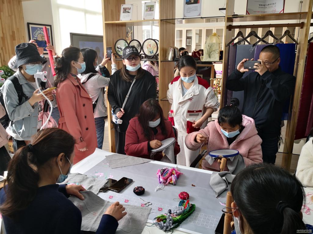 随后,师生到大悟汉绣产业研究院及金岭村汉绣产业基地进行了实地教学活动。了解大悟汉绣的发展历史,观摩绣娘的现场刺绣,参观大悟汉绣的优秀作品。围绕汉绣的市场推广及汉绣人才培养等问题,师生和现场工作人员展开热烈探讨,对汉绣产业发展中遇到的实际困难把脉问诊,献言献策,本次学习引发了“一村多”学员对大悟汉绣的浓厚兴趣,为后续学校汉绣课程的开设打下了良好的基础。