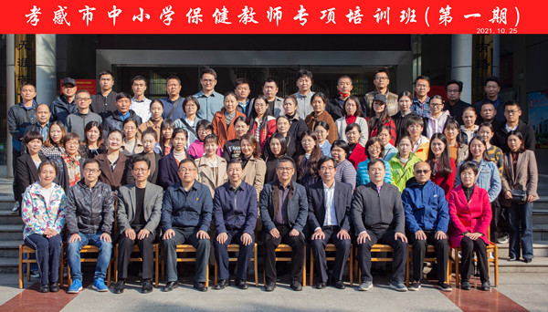 (本网通讯员:张进兵)10月25日上午,由孝感市卫生健康委员会、孝感市教育局联合主办的孝感市中小学保健教师专项培训班在学校文博馆学术报告厅顺利开班。孝感市卫健委党组成员、副主任、市疾控中心主任蔡全民,市教育局党组成员、副局长王建军,学校党委委员、副校长梅重,市教育局中小学体育卫生工作站站长彭卫红,学校医学院院长许三林、职业培训中心主任林文学出席,来自孝感城区中小学的60名参训教师参加了开班仪式。开班仪式由林文学主持。