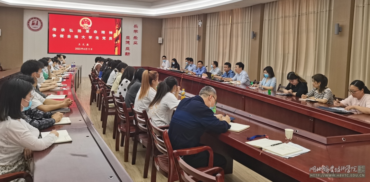 (本网通讯员:孙维国)4月11日,教育与艺术学院2022年上半年专题党课在西校区文德楼二楼会议室举行,学校纪委书记、监察专员王文康同志以《传承弘扬革命精神,争做合格大学生》为题,为教育与艺术学院师生讲党课。教育与艺术学院班子成员、各教研室主任、各科室主任、业余党校入党积极分子,以及学校纪检综合室相关同志聆听了党课。