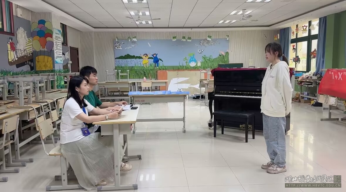 (本网讯 通讯员:吴迪)为进一步贯彻执行《国家职业教育改革实施方案》,落实高职院校“学历证书+若干职业技能等级证书”试点建设工作,根据教育教学事业发展的需要,教育与艺术学院今年3月成功申报“1+X”器乐艺术指导职业技能等级证书项目,主办方为新华国采教育网络科技有限责任公司。5月21日,教育与艺术学院首次“1+X”证书“器乐艺术指导”职业技能等级证书考试顺利举行,2021级学前教育专业60名学生参考。