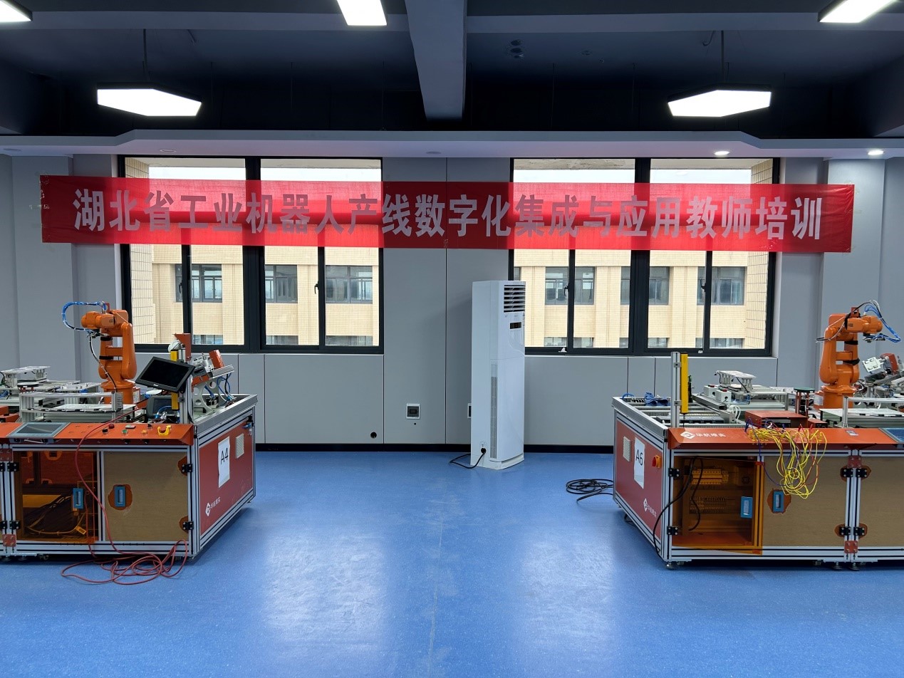 (本网讯 谢超明)1月22日,由大发登录官网首页、北京华航唯实机器人科技有限公司主办的湖北省工业机器人产线数字化集成与应用骨干教师培训班在我校开物楼6楼工业机器人实训基地开班,来自全省26所高职院校,59名教师参加培训。