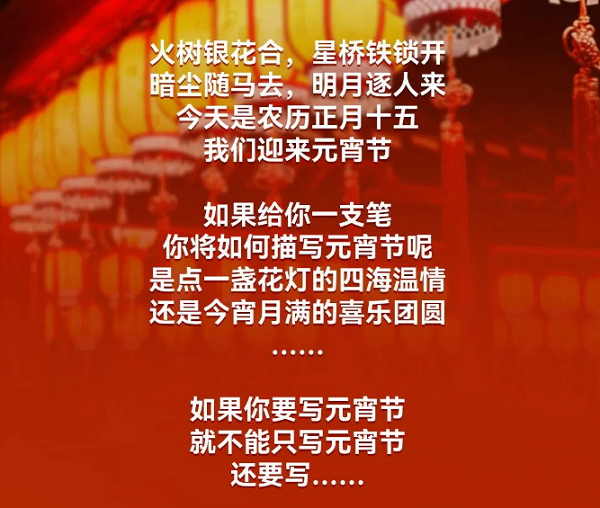 正月十五元宵节,是新年第一个月圆之夜,也是春节后的第一个节日。作为一个传统的节日,元宵节从两千多年前的西汉时期就已经存在了。