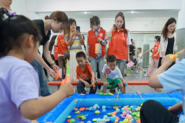 由校团委学生干部、青年志愿者协会、教育与艺术学院学生代表组成志愿服务团队,全程一对一地接待了每一位小朋友,贴心周到的服务让整个活动井然有序,既有看点,更有亮点。为了活跃和丰富孩子们的亲身体验,本次活动特别设置了“小小领路人”、“气球保卫战”、“疯狂便利贴”等可以发展孩子动作协调性的游戏和“你画我猜”、儿童观影、投壶、玩具在哪里等益智类项目,丰富有趣的亲子游戏活动,让孩子们开心地沉浸其中。