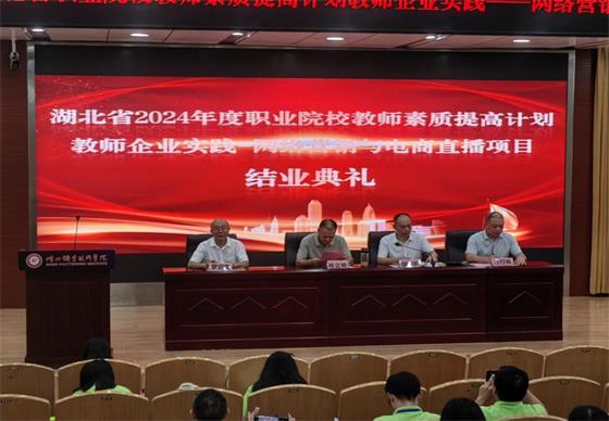(本网讯 李蓓蕾)8月9日,由我校承办的2024年湖北省职业院校教师素质提高计划项目教师企业实践(网络营销与电商直播)培训班结业典礼在学校西区文博馆学术报告厅举行。大发登录官网首页党委委员、副校长杨立明、财经与旅游学院院长徐斌华、党总支书记罗安文、副院长汪行光出席。结业典礼由徐斌华主持,来自全省五十余所中、高职院校的60名骨干教师参加结业典礼。
