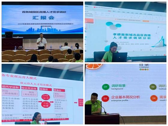 60名国培学员分成10个小组在首衡城项目公司工作人员的协助下,分赴园区果蔬、水产等市场展开实地调研活动,通过问卷调查、深度访谈、现场观察等方式收集关于网络营销和电商直播人才需求的第一手资料,深入了解企业运营情况,并经过紧张而有序的数据整理、分析与讨论,形成了高质量的调研报告。在汇报展示环节,各小组代表轮流上台,以PPT、图表等形式生动展示了调研成果,深入浅出地剖析了首衡城园区网络营销专业人才供需状况、岗位设置情况及素质能力要求等,并提出了针对性的意见与建议,充分展现了学员们的专业素养和创新能力。整场汇报紧凑而精彩,赢得了阵阵掌声。