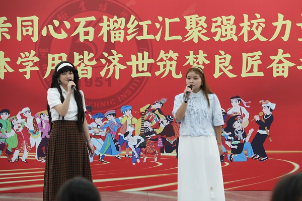 (本网讯 陈灏 邱菊花 余斌清 唐熙隆)盛世华诞石榴红,民族团结中秋圆。9月16日,庆祝中华人民共和国成立75周年暨“我们的节日·中秋节”各族师生主题文化活动在东苑食堂举行。