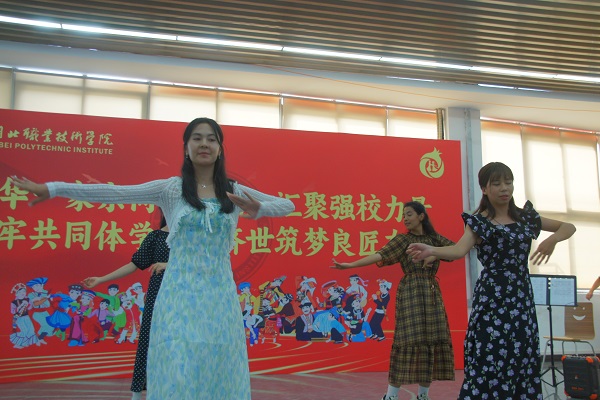 我校以铸牢中华民族共同体意识为主线,拓展育人渠道,五育并举提素养,融合育人促发展,构建“大思政课”格局,实现思想政治教育与校园文化、社会实践的有机融合,奋力担当新时代文化育人新使命,落实立德树人根本任务。“各民族传统体育文化反映了中华民族的优良品格和民族精神,我们要进一步弘扬光大,增强文化认同,坚定文化自信,为中华民族共有精神家园建设贡献体育力量。”体育部教师、全国校园大课间啦啦操推广先进个人伍伶俐老师,带来土家族传统舞蹈《摆手舞》,展现出土家儿女勤劳勇敢、乐观向上的精神风貌。