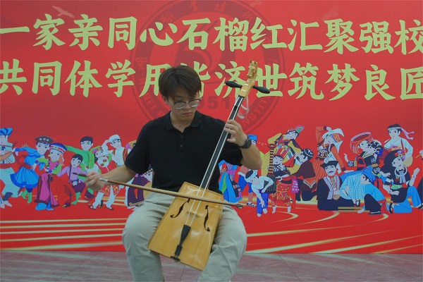 凯丽比努尔、依不拉英的舞蹈《吉祥如意》,旋转跳跃间传递着对美好生活的无限向往和诚挚祝福。高家棋同学演奏的扬琴《所念皆星河》,不仅是一首歌,更像是一场关于理想的浪漫独白,引领我们穿梭于浩瀚星河,寻找属于自己的光芒。