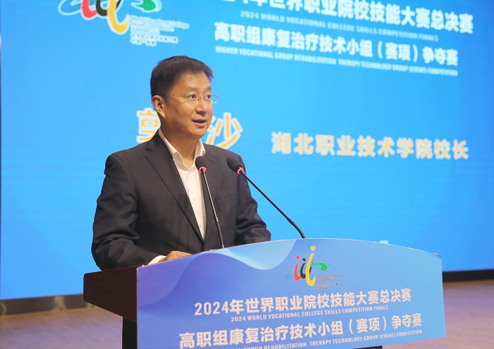 校长郭沙作总结讲话并宣布大赛闭赛。他强调,这是一届富有新意、精彩纷呈的大赛,互学互鉴、共同提升的大赛,展示成果、提升质量的大赛,我们将进一步拓展友好交流平台,打造职教赛事品牌,建好智慧康养专业群,服务大健康产业,为建设教育强国、健康中国作出湖职贡献!