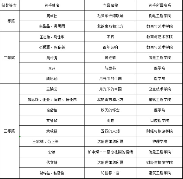 朗诵比赛决赛获奖名单